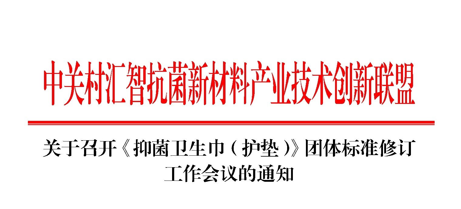 關(guān)于召開《抑菌衛(wèi)生巾(護(hù)墊)》團(tuán)體標(biāo)準(zhǔn)修訂工作會議的通知